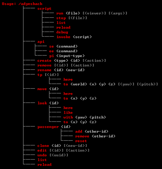 Adyeshach开始主要命令命令结构命令结构 插件主命令为 /adyeshach,也可以是 /ady、/npc,所有的功能入口都在这里。 主要包含以下几个部分: 单位管理 单位编辑 脚本控制 其他 详见子页面。